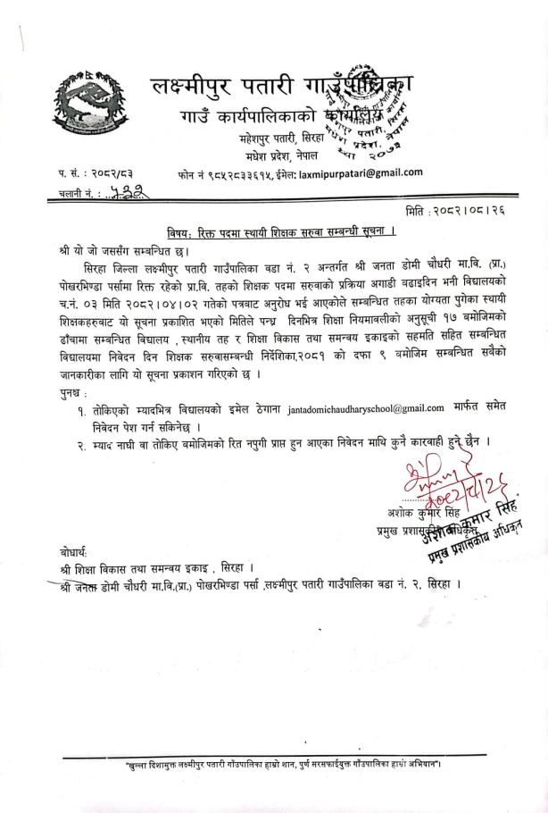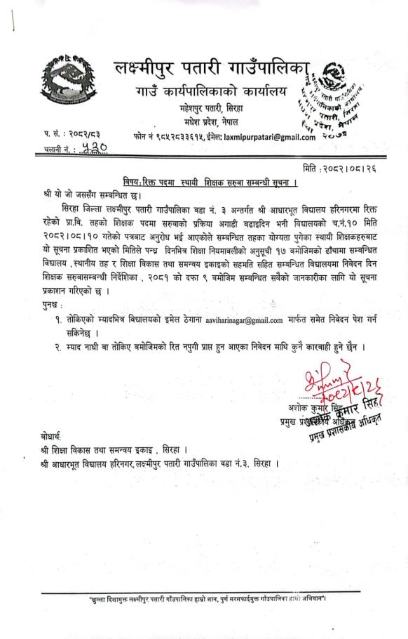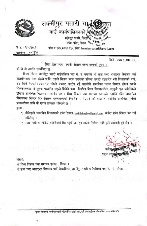 शिक्षक सरुवा सम्बन्धी सुचना